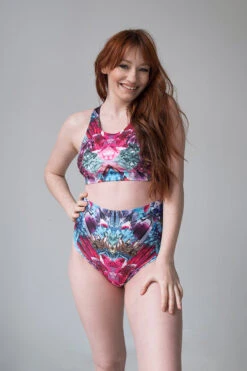 Classic high waist shorts in our bestselling jewel print. Matched here with the Crystallised Openback Top.
