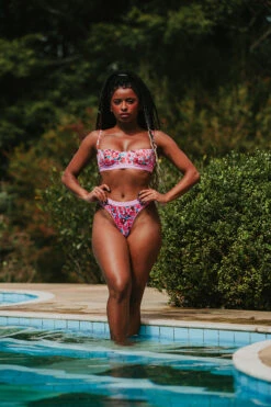 Rolling’s Balconette Top is a playful take on a classic style. Featuring structured cups and an adjustable bra style closing at the back.