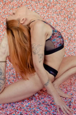 Rollings’s classic Petali print, updated and restyled with a black mesh overlay for a darker sexier twist. This scoop neck racer back top features a full mesh back and logo underbust band.
