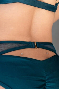 - Made with Tatiana Activewear’s signature shimmery teal fabric and mesh